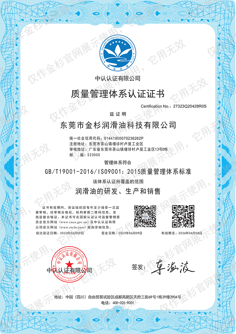 金杉润滑油科技有限公司是国内最早以振兴民族的品牌为己任,专业生产润滑油的公司。
